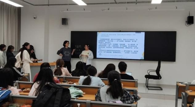 本次活动主题选自《中医学基础概论》,钟淑萍老师采取“翻转课堂”的方式,将全班分为5个小组,每组分别对应“肝心脾肺肾”五脏,且每小组又分为讲解组和表演组。分组安排后,钟老师对准备过程中可能涉及到的素材收集难点、创意思路、讲解重点、表演内容和形式进行了指导。各组成员从刚听到安排时的犹豫、犯愁,到打磨准备、现场演绎的渐入佳境,再到复盘会上纷纷表示这样的活动多多益善。